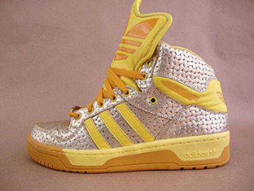 Yesterday we showed you yet another collaboration between Jeremy Scott and adidas Originals that resulted in yet another high-top silhouette- the JS Mickey. Not even twenty four hours removed from showing you the aforementioned sneaker model, we have now come upon the JS Logo Attitude high pictured here in a metallic silver/yellow colorway on eBay. Check out pictures of this sneaker after the jump, as you decide whether or not to place a bet for this shoe.