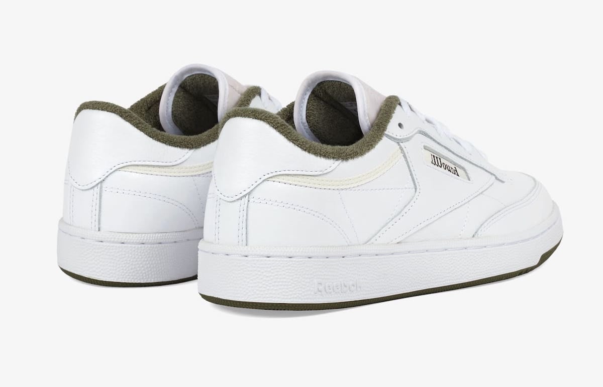 This Reebok Club C by JJJJound features premium White leather on the entire upper and Olive Green terry cloth on the liner. JJJJound branding appears on the lateral side, and White drapes the midsoles. Other details include co-branding on the insoles, a Black rubber outsole, and each pair comes with special packaging.