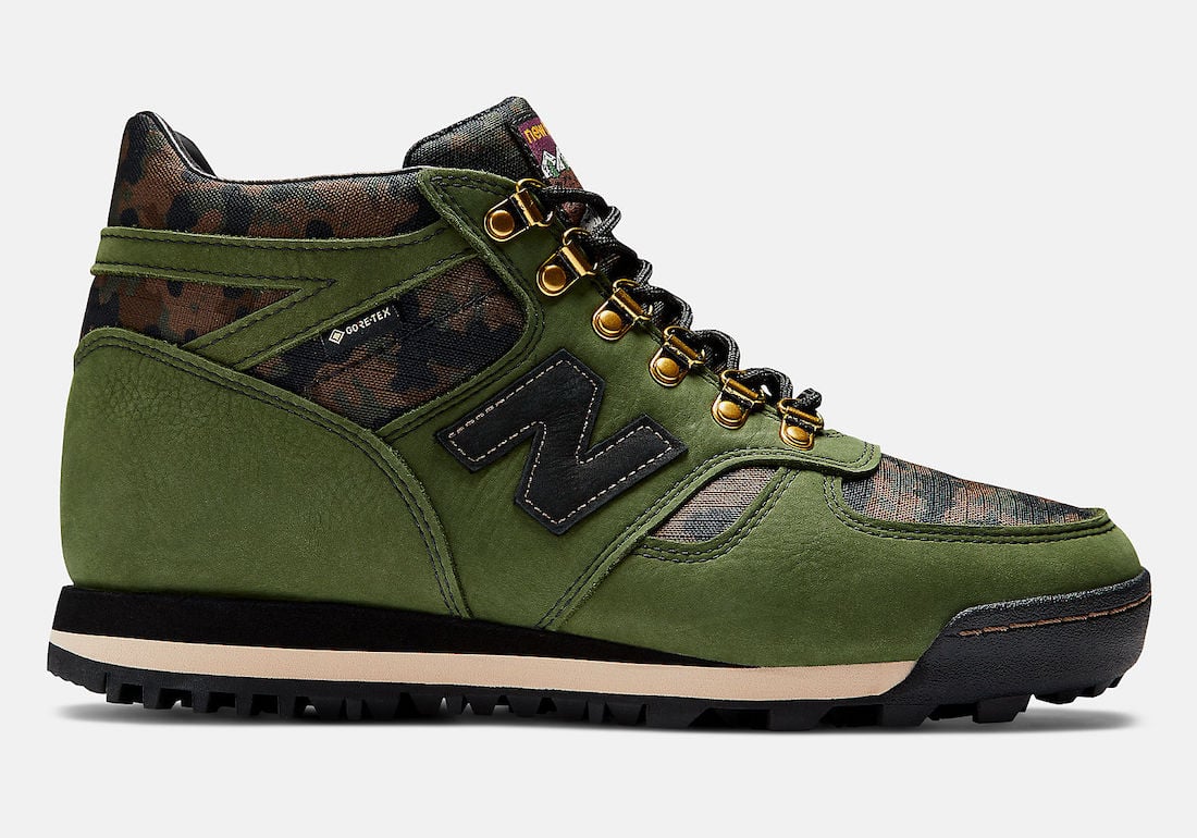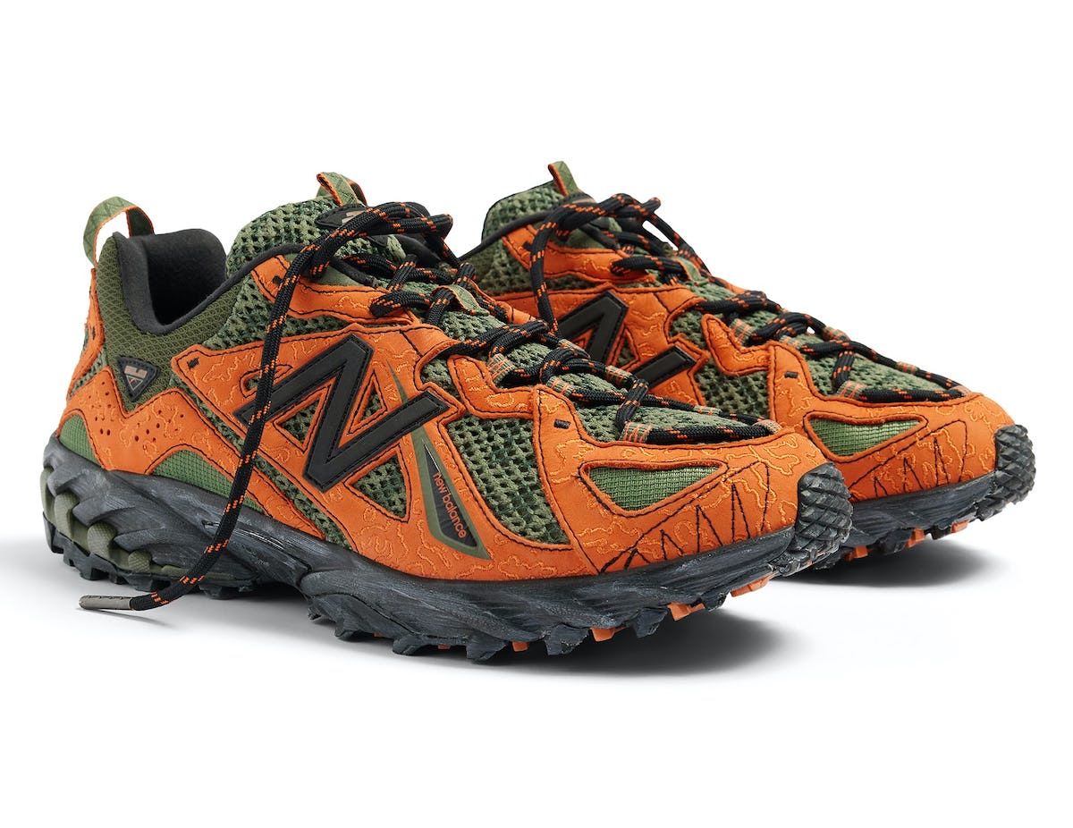 Two New Balance 610 color options will be available, and Joe Freshgoods used a โJFGโ print on the mesh base in Olive or Black. Next, Orange/Olive and Tan/Orange land on the overlays and accents. As for the New Balance Rainier Boot, it comes with Black and Brown camouflage on the base and Olive Green suede overlays. Gold appears on the metal eyelets, GORE-TEX labels appear on the lateral side, and leather covers the liner. The Rainier also comes with co-branding on the tongues and a Vibram outsole. Each pair will come with special packaging.