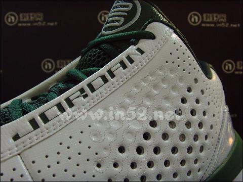 Just like the others, these sport a perforated upper for breathability. The color blocking is the same as the previous 2010 Teamโs and gives us a green and silver finish on the white base. These also sport a lizard embossed print on the toe, heel and eyelet panel giving a bit of contrast in a subtle way.