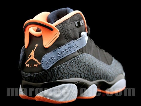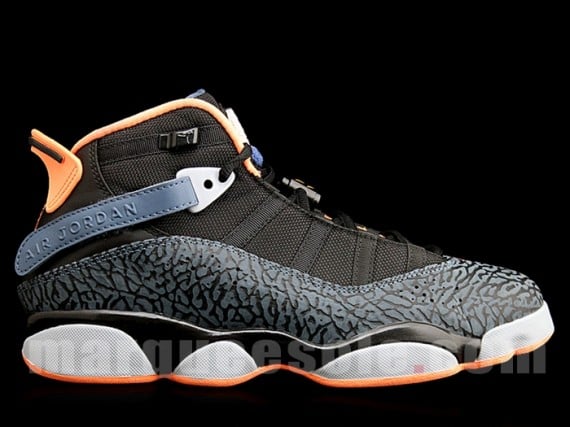 Even though the Charlotte Bobcats are set to change their name back to the Hornets, that isn’t stopping the folks over at Jordan Brand from releasing some Bobcats-inspired heat come January. With the “Bobcats” Air Jordan X set to arrive on January 11th, all of you sneakerheads will see this pair of Jordan 6 Rings drop on the 14th. Serving as a looser interpretation of the previously mentioned team, this upcoming release sports a clean mix of of black, orange, blue and grey with Elephant print filling the patent leather sectioning. Read on after the jump to check out a few more looks and make sure you keep your browsers locked to SneakerFiles for all your sneaker updates.