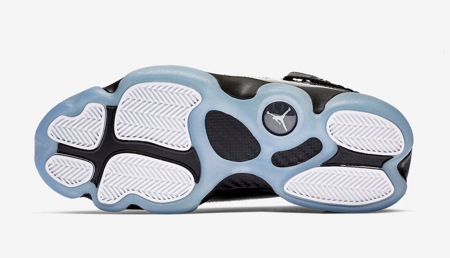 This Jordan 6 Rings comes dressed in a Black and White color combination. Throughout the upper we have Black while mesh and patent leather runs throughout along with tonal branding. Giving this shoe the โBlack Iceโ nickname, it features an icy translucent outsole to complete the look.
