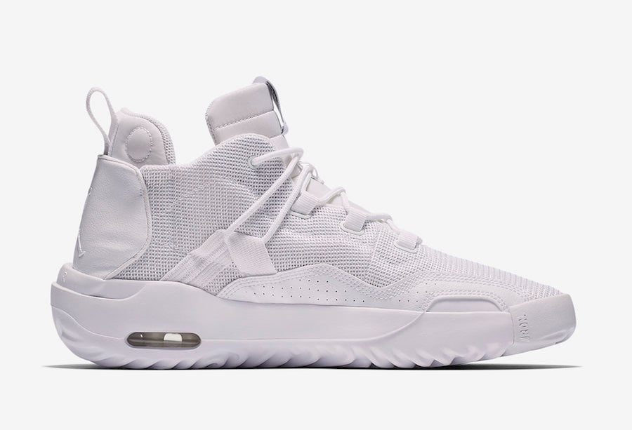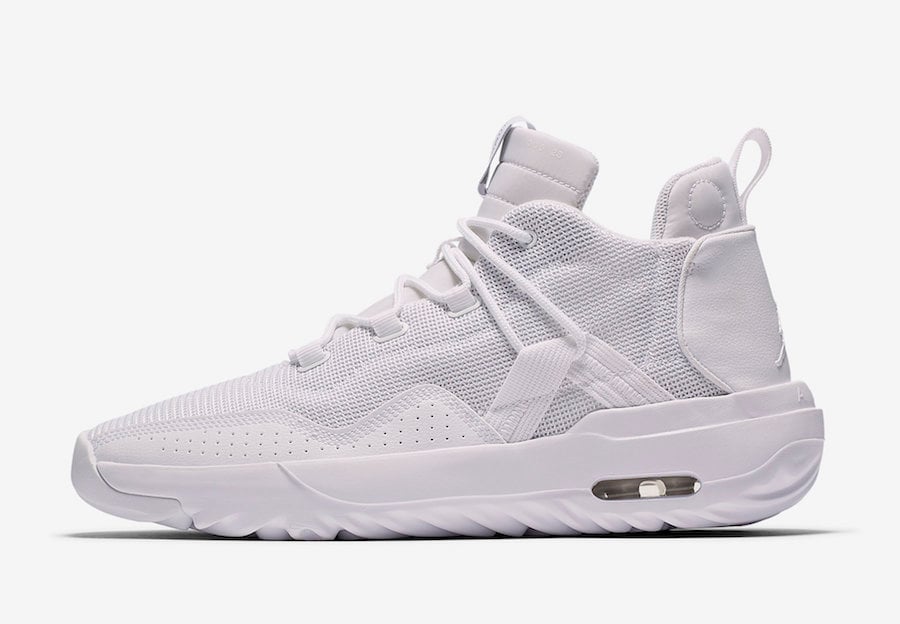 One of the upcoming color options comes in a clean White theme and is nicknamed โTriple Whiteโ. Constructed with mesh across the upper, leather lands on the mudguard. Other highlights includes a Jumpman on the heel and molded outsole.