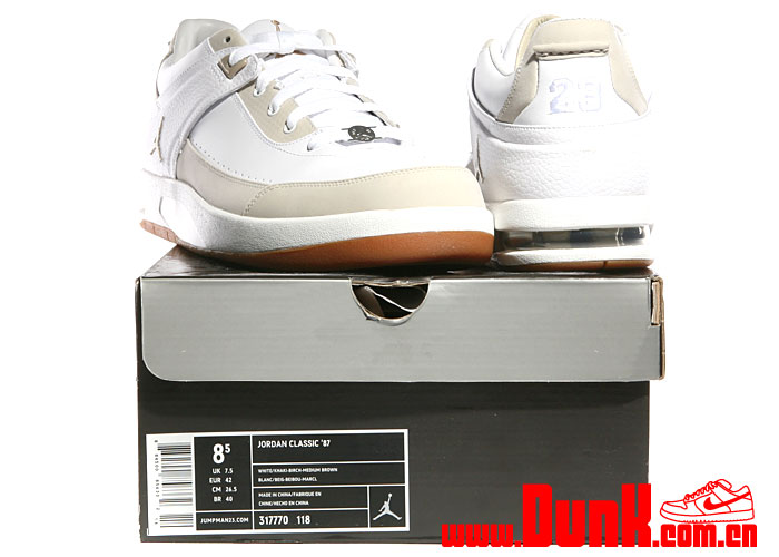 Shown here, is the Classic 87 with design cues from the Air Jordan II, with an all white upper, Birch and Khaki accents and Medium Brown outsole. Expect to see these at retailers this summer, or grab a pair over seas, like Dunk.