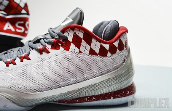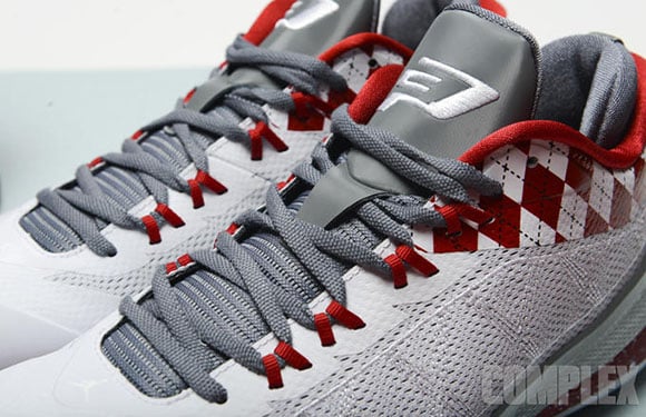 Being called ‘Worn to Assist’, the Jordan CP3.VIII features white panels while red makes up for the argyle pattern, grey makes it’s way onto the tongue and a silver on the midsole.