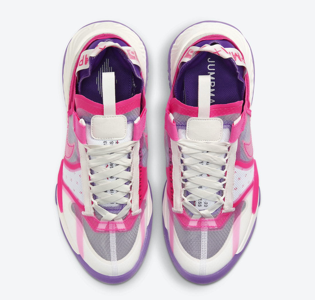 Featuring a Sail, Fierce Purple, and Hyper Pink color combination. Utilizing a transparent upper and suede on the heel. Next, leather adorns the sides, towards the heel, and Swoosh logo. Both Purple and Pink accents run throughout while the upper sits on a Sail React cushioned midsole. Lastly, a Purple translucent rubber outsole finishes the look.