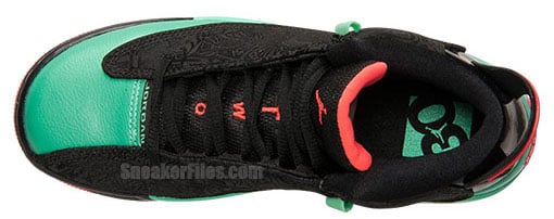 Yesterday we showed you a single shot of the girls Jordan Dub Zero and now we have an exclusive detailed look which shows us the use of verde green around the mudguard, part of the midsole and toe box. Infrared highlights the Jumpman logo on the tongue, part of the outsole, heel and inside of the tongue. For everything else black is used with a light laser etching on the sides.