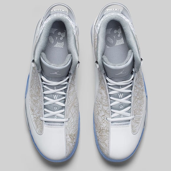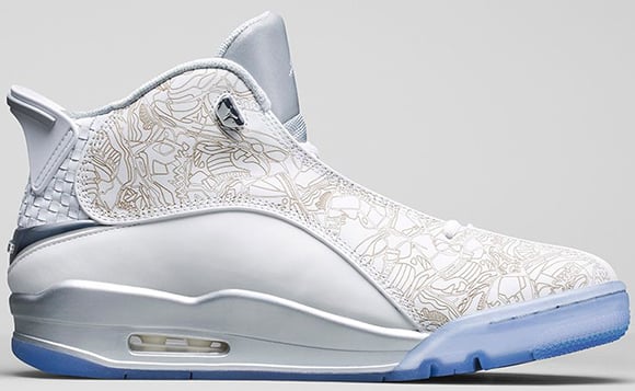 We have yet to see a detailed look of the Laser Jordan Dub Zero. A first look came via Gio Gonzalez, and since it was a collage picture of other sneakers he received, the pixel size was small. Now from the up close look we can see they use a blue tinted translucent sole, white uppers and metallic silver accents.