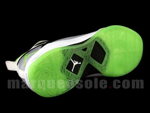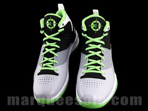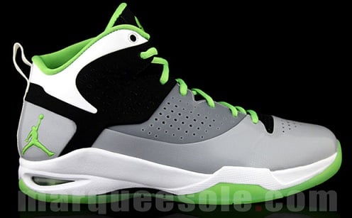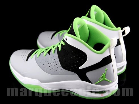 Jordan Fly Wade colorways continue to trickle in. After taking a look at the first colorway, as well as an “infrared” version, we now bring you this neon green pair. The upper comes in predominantly grey and black, with white peeking out close to the heel and on the midsole. Neon green is seen accenting the entire shoe by way of the ankle lining, Jumpman logo, (transluscent) outsole and shoe laces. In your opinion, where does this colorway rank among the three Jordan Fly Wades we’ve seen thus far?