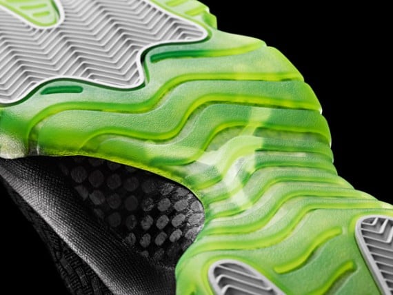 Do not adjust your laptop screens. Though the new Jordan Future may look like the Air Jordan XI at first, it is indeed a totally different shoe. Despite using the same midsole tooling as the iconic silhouette, these joints sport a full woven upper that provides the shoe with more of lifestyle vibe. Continue reading after the jump to check out some detailed shots after the jump and be sure to drop us a line in the comments section below.