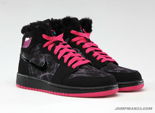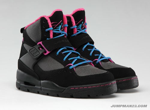 Also included in the line up for girls are two versions of the Air Jordan 1 and Jordan Flight 45 Hi. Constructed to keep her feet warm, these models will include furry inner linings and all sport alternating black and pink accents.