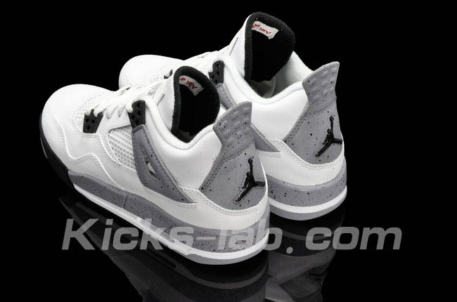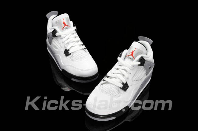 There are many great releases scheduled and one of the most clamored is none other than the White/ Cement Air Jordan IV. Seen here in its entirety, this GS sized pair looks pretty good so far. Black speckles have made their way back onto the shoe while the plastic โWingsโ have been replaced with another material (GS only).