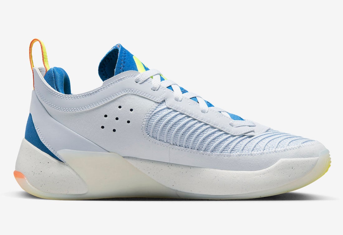 This Jordan Luka 1 features a Football Grey, Volt, Dark Marina Blue, and Sail color combination. Highlighted with a low-cut build, the pair features a new IsoPlate system and a full-length Formula23 foam in the midsole. Utilizing the FlightWire frame on the lateral side, accents of Volt give this pair a playful look.