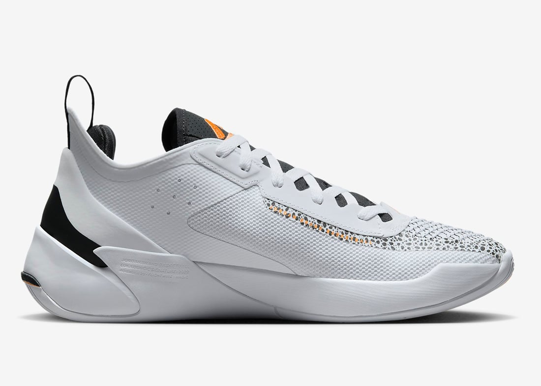 This Jordan Luka 1 comes dressed in a White, Total Orange, and Black color combination. Utilizing mostly White across the upper, the lower panels have a safari-like print that wraps the toe and heel. Highlighting the shoes, Orange adorns the branding, areas on the midsole, and the rubber outsole. Finishing the look is gradient insoles.