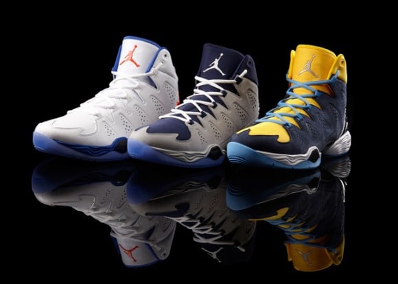 On Saturday at Madison Square Garden, Jordan Brand will be out in full effect in what is being called “Super Saturday.” With Marquette, Georgetown and Carmelo Anthony all set to hit the hardwood, Jordan Brand has created this ill collection of Melo M10s for the said occasion. The Golden Eagles will hit the court first rocking their custom midnight navy M10s followed by the Hoyas with their cool grey/navy blue kicks. Last but certainly not least, Carmelo will lace up a fresh home-inpsired colorway that come equipped with a clean white leather base with orange and blue accents. Continue reading after the jump to check out a detailed look at the collection and be sure to drop us a line in the comments section below.