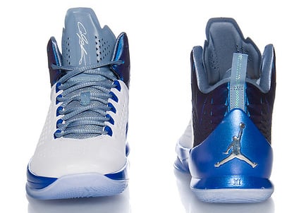 The new Jordan Melo M11 comes with a white upper while using grey on the tongue. Around the flight plate is royal blue and by the ankle is the use of metallic blue. The heel will rock a chrome Jumpman while the sole is dressed in transparent blue with a hit of orange. Nevertheless, this pair is inspired by the New York Knicks.