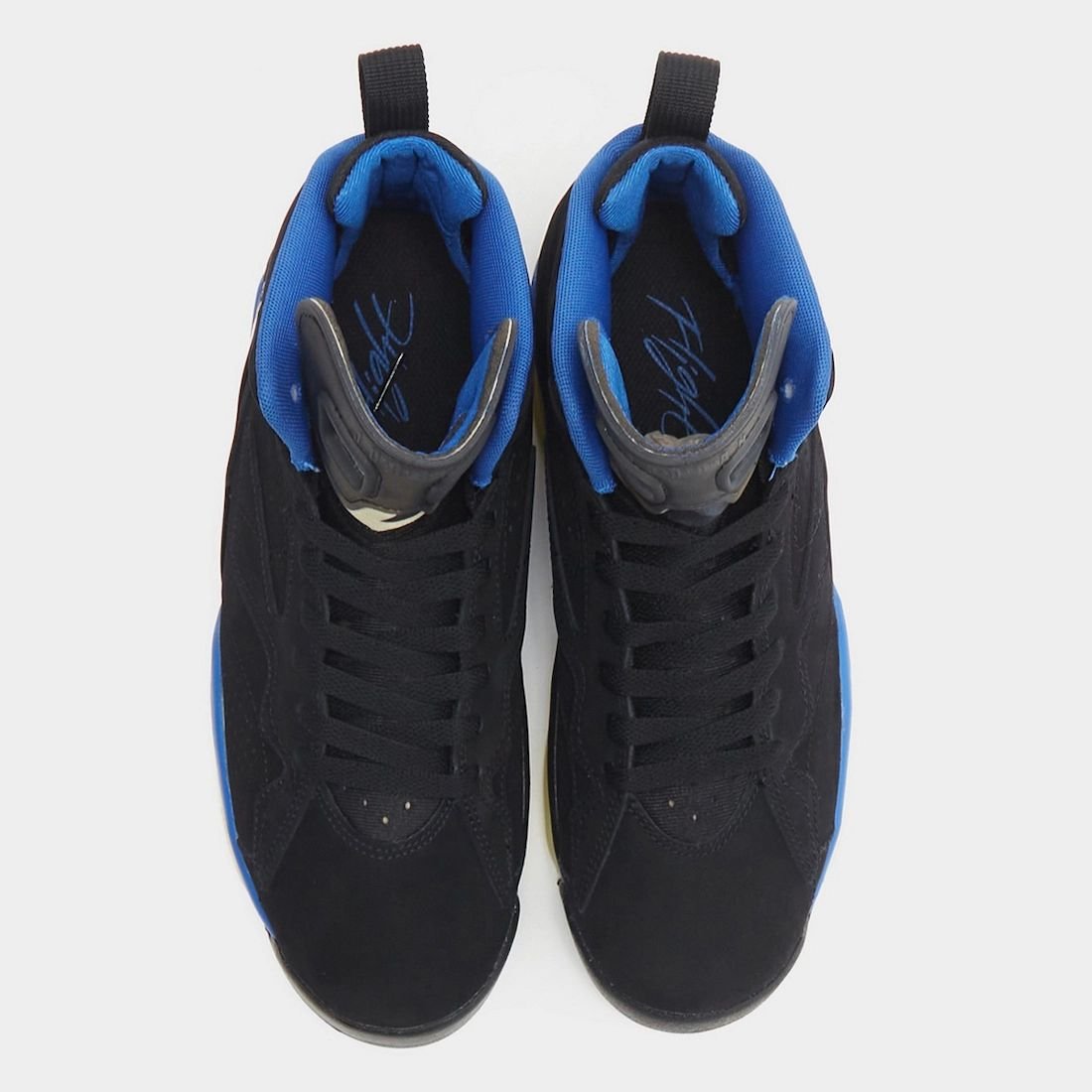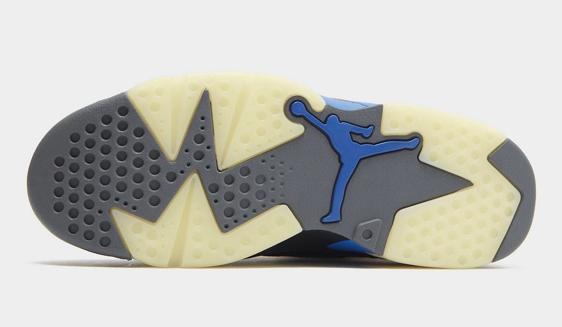 Specifically, this Jordan MVP comes dressed in a Black, White, Varsity Royal, Muslin, and Iron Grey color combination. Utilizing Black nubuck across the upper, Royal Blue lands on the liner, within the TPU paint strokes (from the Air Jordan 8), part of the midsole, and Nike Air branding on the heels. The translucent tongue and midsole nod to the Jordan 6 and the overlays are taken from the Air Jordan 7. Other details include an embroidered Jumpman on the ankle and a translucent outsole.