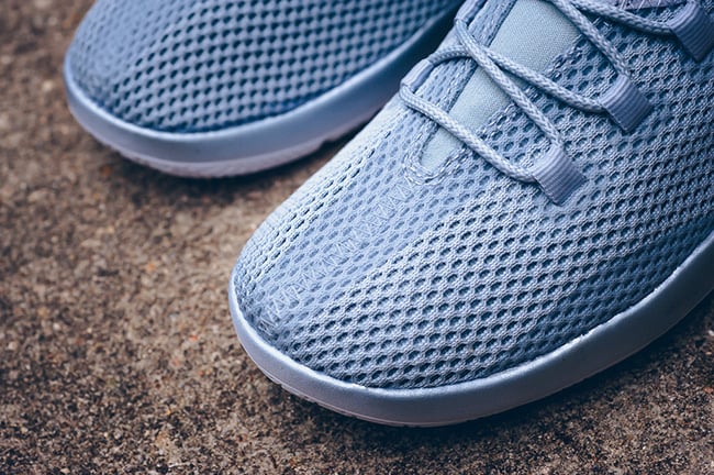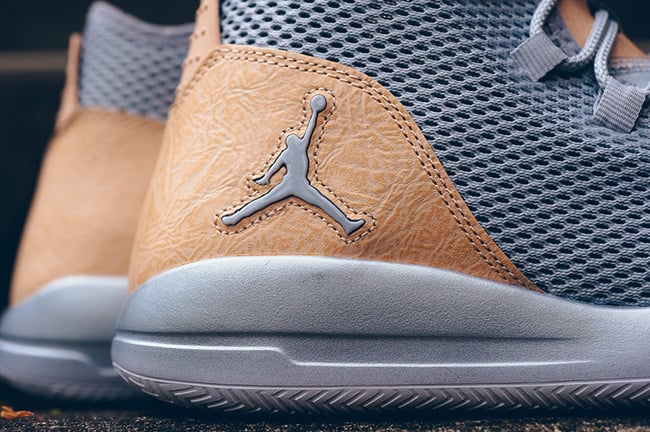 The Premium version of the Jordan Reveal is equipped with mesh and leather materials. Through the toe and panels is the use of Wolf Grey while around the heel and down the tongue is Vachetta Tan. Looking closely, the leather that wraps the heel will have elephant print embossed which is a nice touch. Other highlights include rope laces and a White midsole.