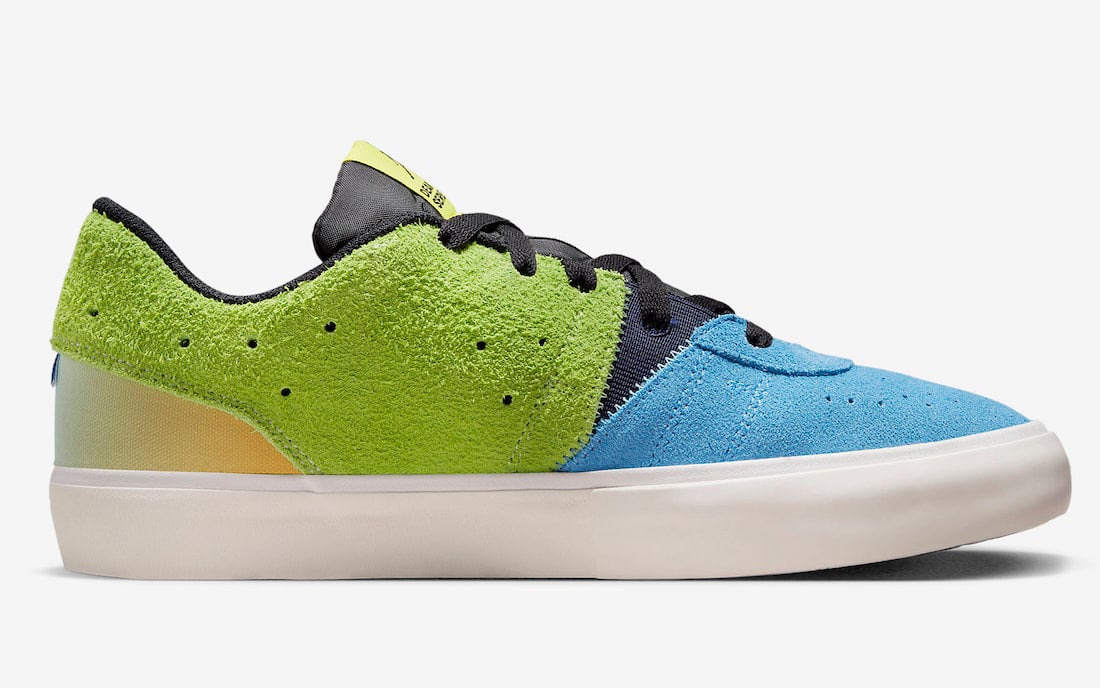 This Jordan Series 01 features a mixture of canvas, suede, and mesh while highlighted in a mismatched color blocking. Next, โDear Seriesโ branding lands on the tongues and lateral side while a White midsole and a Black rubber outsole complete the look.