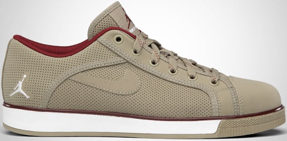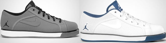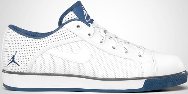 Official colors are Cool Grey/Black-White, White/French Blue-Flint Grey and Khaki/White-Team Red. Each Jordan Sky High Retro Low uses perforated uppers and a solid toe box. Retail price for each pair is $80.