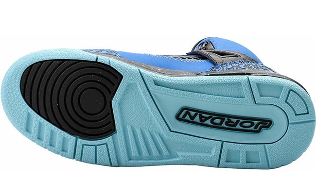 Through the base is where your soar blue will land. Following is Copa which is a lighter shade of blue that is used on the outsole, eyelets, Jumpman logo, lace lock and speckled across the black midsole. The last touch is black filling in the elephant print, tongue, mesh and liner.
