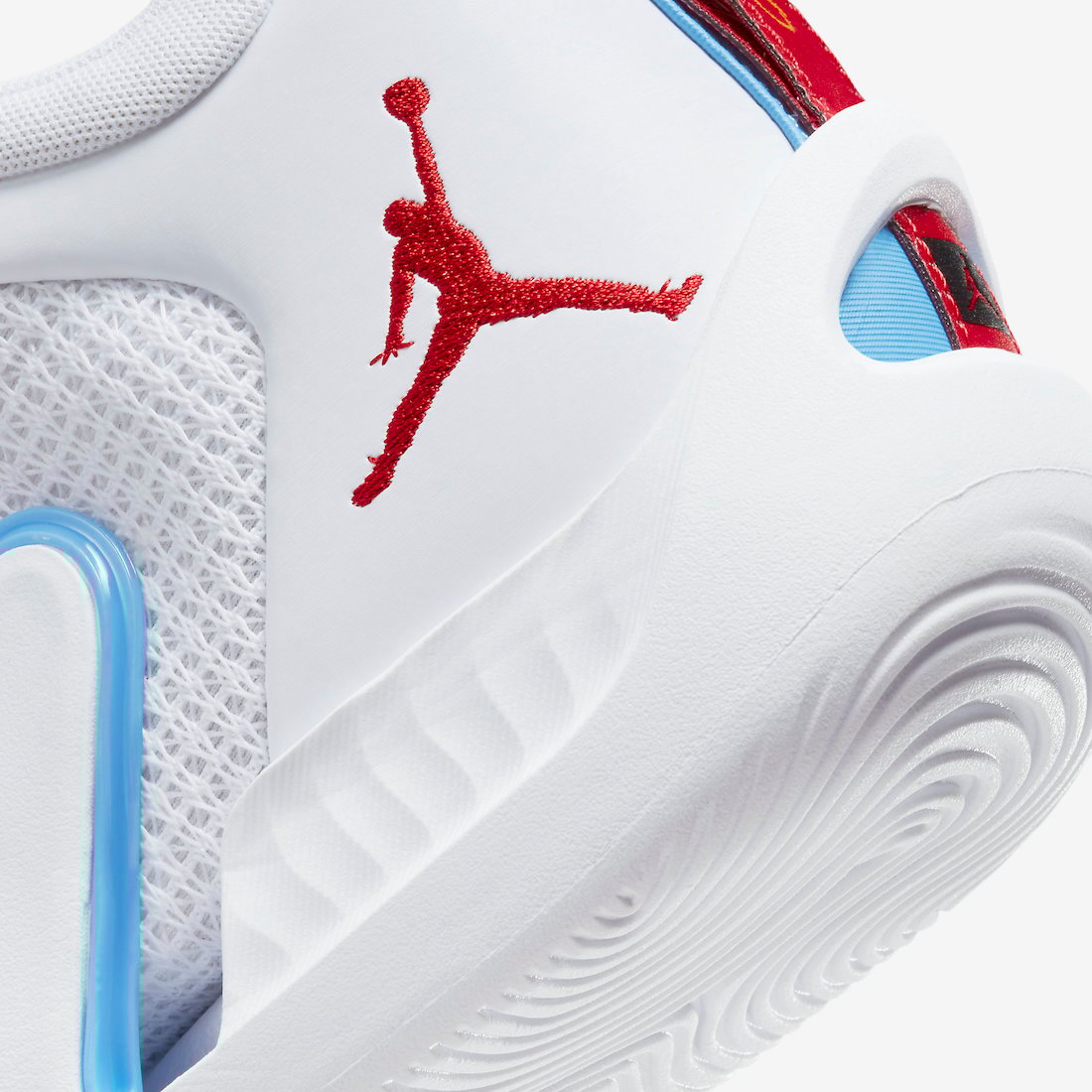 This Jordan Tatum 1 comes dressed in a White, University Red, University Blue, and University Gold color combination. Utilizing White throughout the upper, while constructed with mesh and leather. Next, Red adorns the branding with Blue on the sides and heel. โArcher Aveโ appears on the inside of the tongue, Tatumโs number on the heel. Finishing the look is a White and icy translucent outsole.