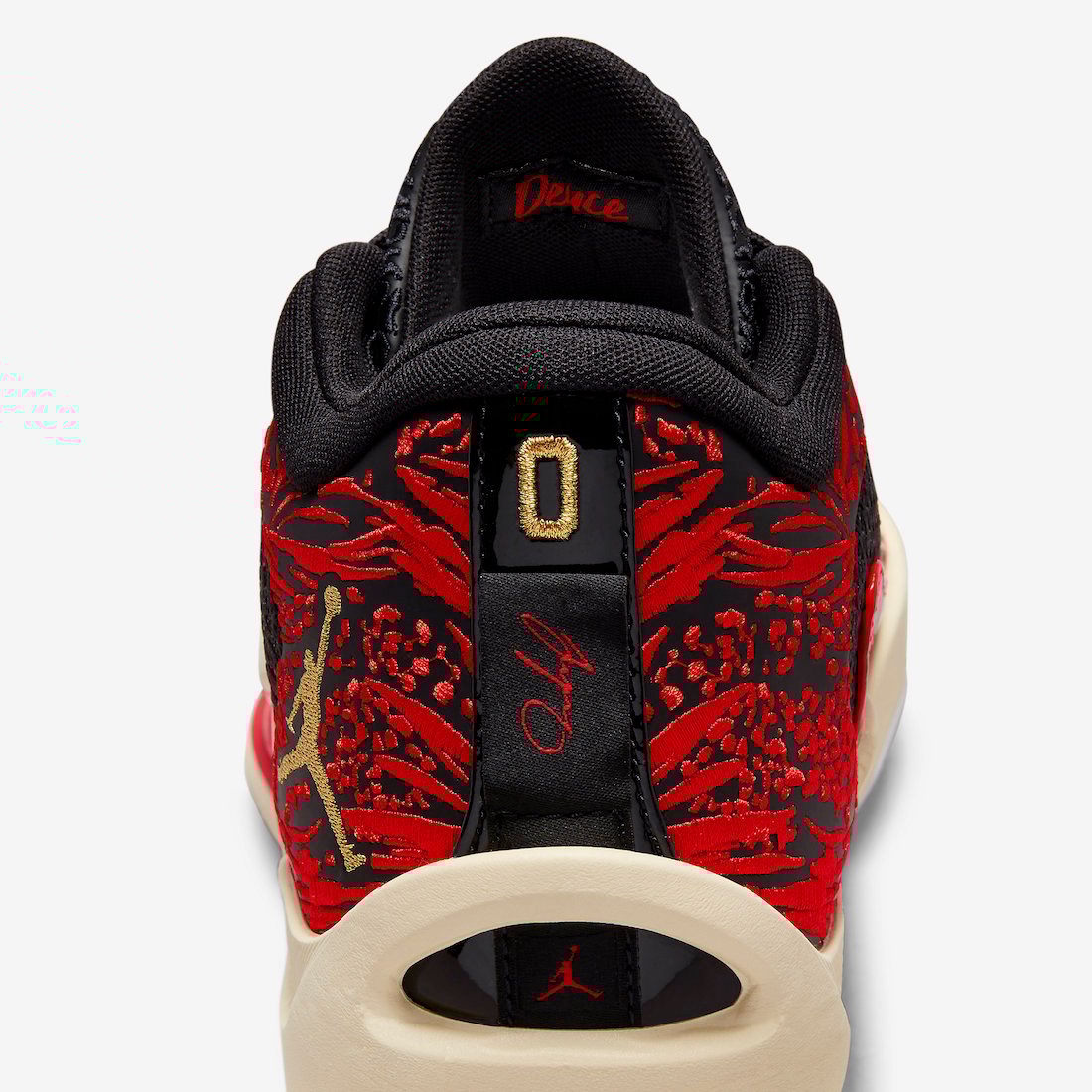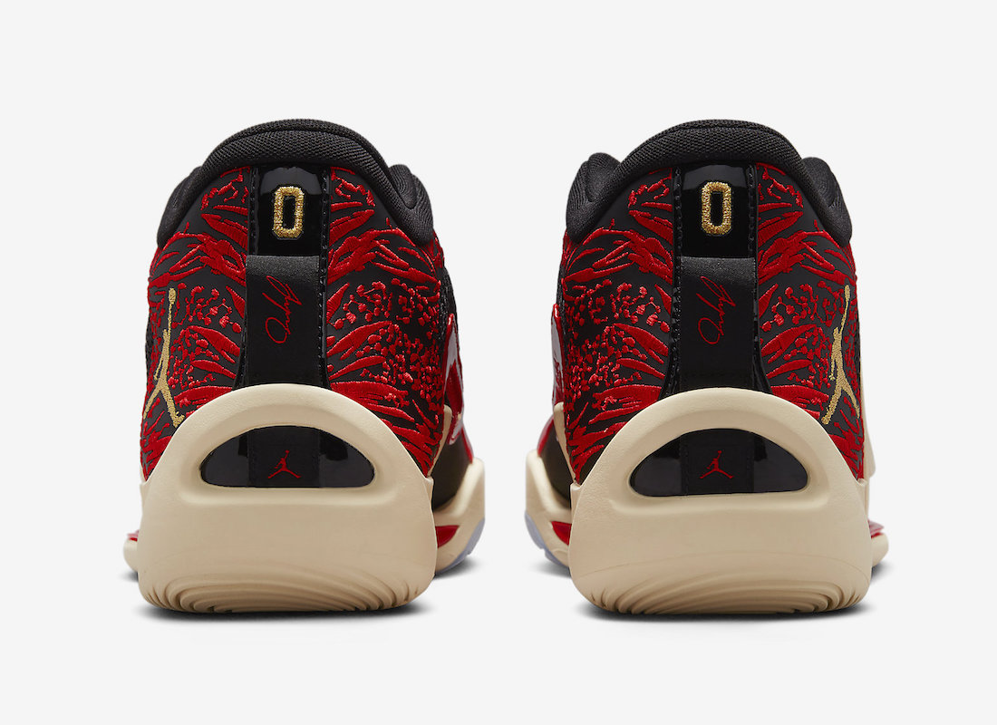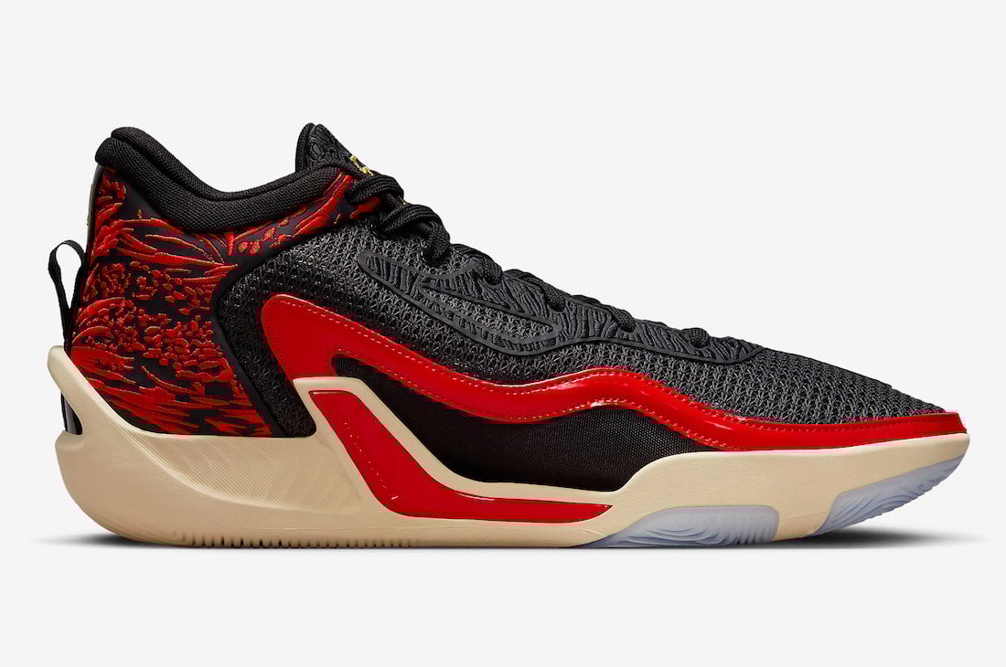 Known as โZoo,โ this Jordan Tatum 1 features a Black, Metallic Gold, University Red, and Beach color combination. Constructed with mesh uppers and a unique pattern wraps the heel with a large Gold embroidered Jumpman logo. The midsole also comes up on the panels, with Black and Red accents. Other details include JT on the tongue and Formula 23 cushioning.