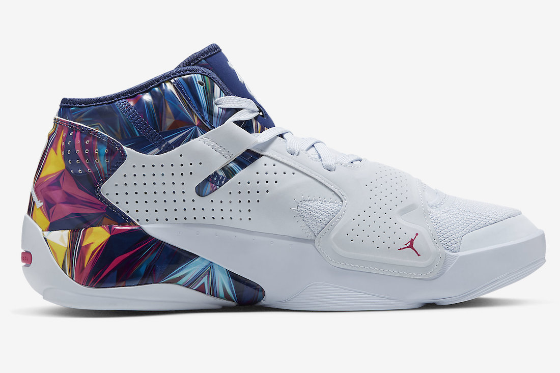 One of the first color options of the Jordan Zion 2 that will release comes highlighted in White. Furthermore, we have Multicolor forming a unique design on the tongue, ankle, and heel. Other details include a forefoot strap, Zionโs logo on the tongue, and his initials โZWโ on the toe cap.