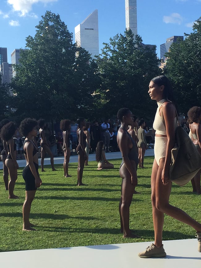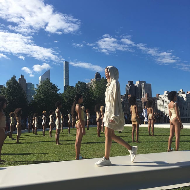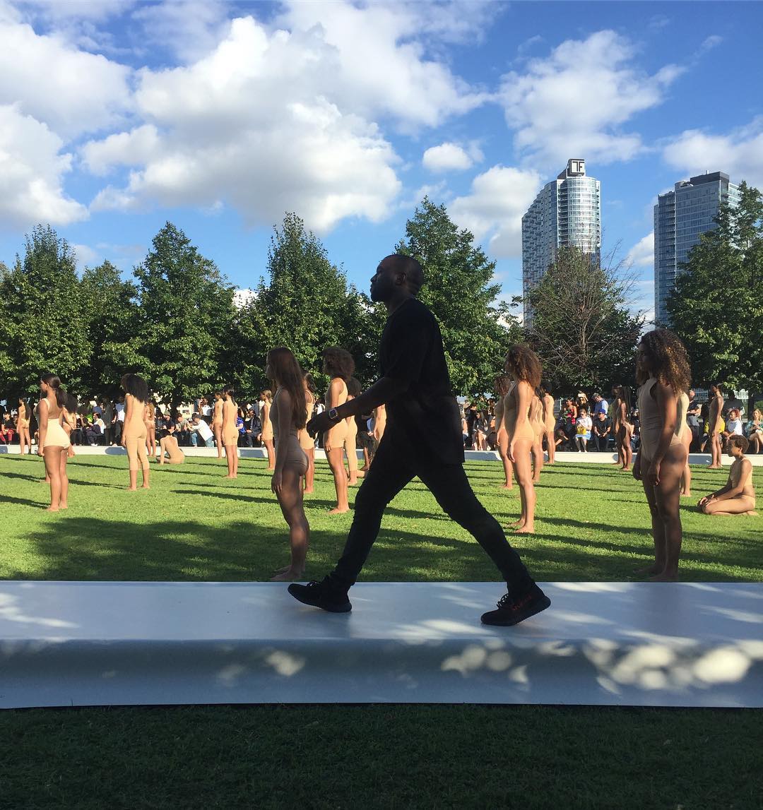 Update: We have all the recap photos of the Yeezy Season 4 event that took place today. Taking place in New York City’s Roosevelt Island, Teyana Taylor was also featured. For footwear, shown was an All-White Yeezy 350 Boost V2 and a Tan pair. Kanye West was spotted in a Black pair as well. Check out the images below.