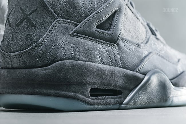 Update: Although we have already got a first look at the Kaws x Air Jordan 4 Cool Grey collaboration featuring Suede, the artists shares a teaser which gives us a closer look at the heel.