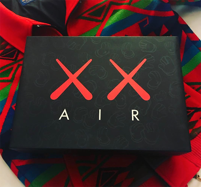 Update: We now have a look at the KAWS Air Jordan 4 Box. As you can see, KAWS branding of XX is seen with AIR on a Black base. You can also see KAWS graphics seen in the background. Via Don C.
