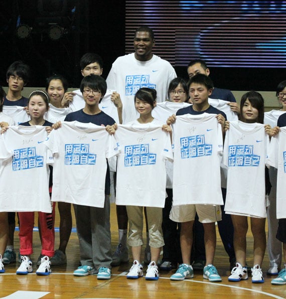 Rising inย Super-stardomย in only a short time, Kevin Durant continues to make strides on and off the court. And when his status rises, so does his shoes. Since, the Nike KD III reached bench marks in his signature line with the Scoring Title editions, and much attention was drawn to him. Kevin Durant, the youngest player in the history of the NBA to win a Scoring Title, set out to Asia for his Tour of China 2011.