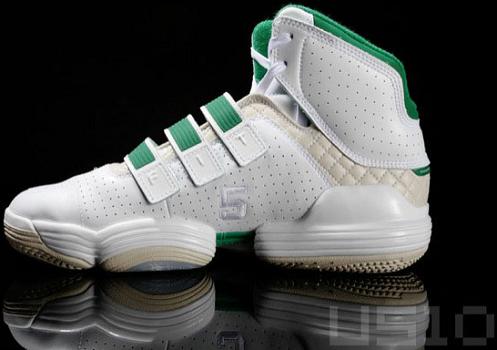 Now we’d like to show you the same silhouette in a player exclusive for the “Big Ticket,” Kevin Garnett. KG’s adidas TS Supernatural Commander sports a cream stitched pattern and white leather on the upper. Boston Celtics green can be seen on the ankle lining, straps, and along the midsole. Personalized KG touches come by way of his jersey number on the inner panels and signature on the heel. Now all we need is for both Dwight Howard and Kevin Garnett to lace-up their respective adidas TS Supernatural Commander PEs and lead their teams against each other to see how the shoe holds up (and looks) in competition against itself.