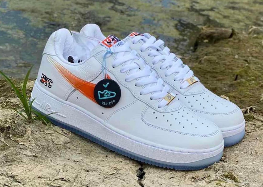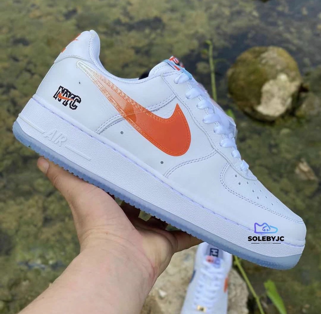 Update (8/7): We now have a first look at the Kith x Nike Air Force 1 โNYCโ in White, Rush Blue, and Brilliant Orange via solebyjc.