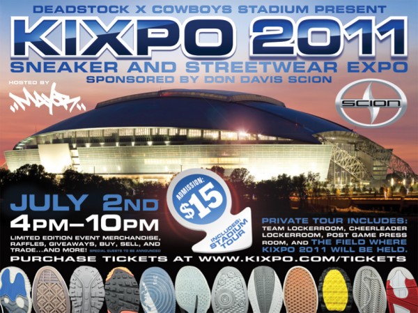 This Saturday (tomorrow July 2nd), well known sneaker celebrity Mayor (ATF Crew) will be hosting the Kixpo 2011 at the Dallas Stadium from 4pm – 10pm. Sneakerheads and celebrity sneaker connoisseurs from all over the country will be gathered to attend the event, and you can as well by purchasing tickets for $15. Check out the flyer below and let us know if you’ll be attending this event.