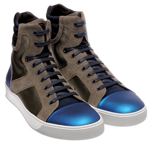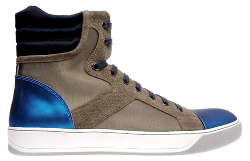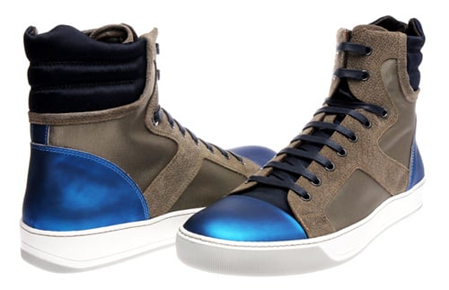 French fashion house Lanvin throws another offering into the pool of designer sneakers, revisiting the use of metallic colors for their latest high-top sneaker. Featuring a metallic blue toe cap and heel panel, the model is offset by an otherwise earthy color scheme of browns and blacks. As if the glistening accent panels weren’t enough, the shoe also alternates between suede and leather for the rest of the upper, creating even more of a contrast. The sneakers are available now from Brown’s and Lanvin boutiques across the globe.