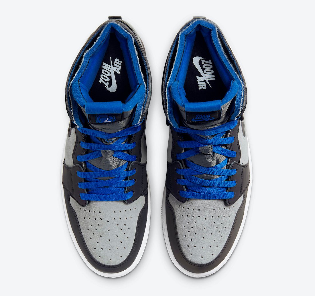 The 2020 championship starts during the month of September and this Zoom iteration of the Air Jordan 1 comes with neutral textured detailing on the upper along with iridescent on the overlays. In addition we have Blue on the laces which also accents the tongue, White runs across the midsole while Black and Blue hits the outsole to finish the look.