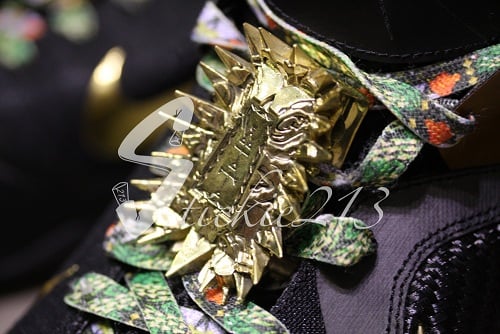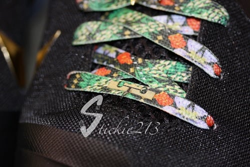 Today we bring you an in-depth look in full detail courtesy of Stickie213. With the black upper and gold accents werenโt enough for you, the inner liner and laces feature graphic art from the album sitting atop a milky translucent outsole.