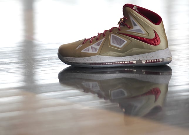 LeBron James will open the season in a special gold-themed LEBRON X paying tribute to the teamโs 2011-2012 Championship.ย James’ tenth Nike signature shoeย combines dynamic containment, protection and responsiveness tailored to one of the worldโs most explosive players.