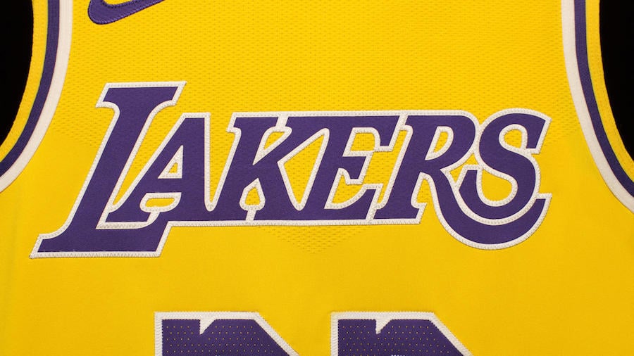 Nike has updated numbers,ย whichย use a vertical drop shadow โ along with a rounded neckline. The font effect referencesย the Lakers’ storiedย past, whileย also positioning aย fresh direction forย the franchise.