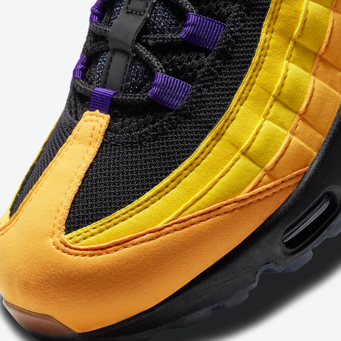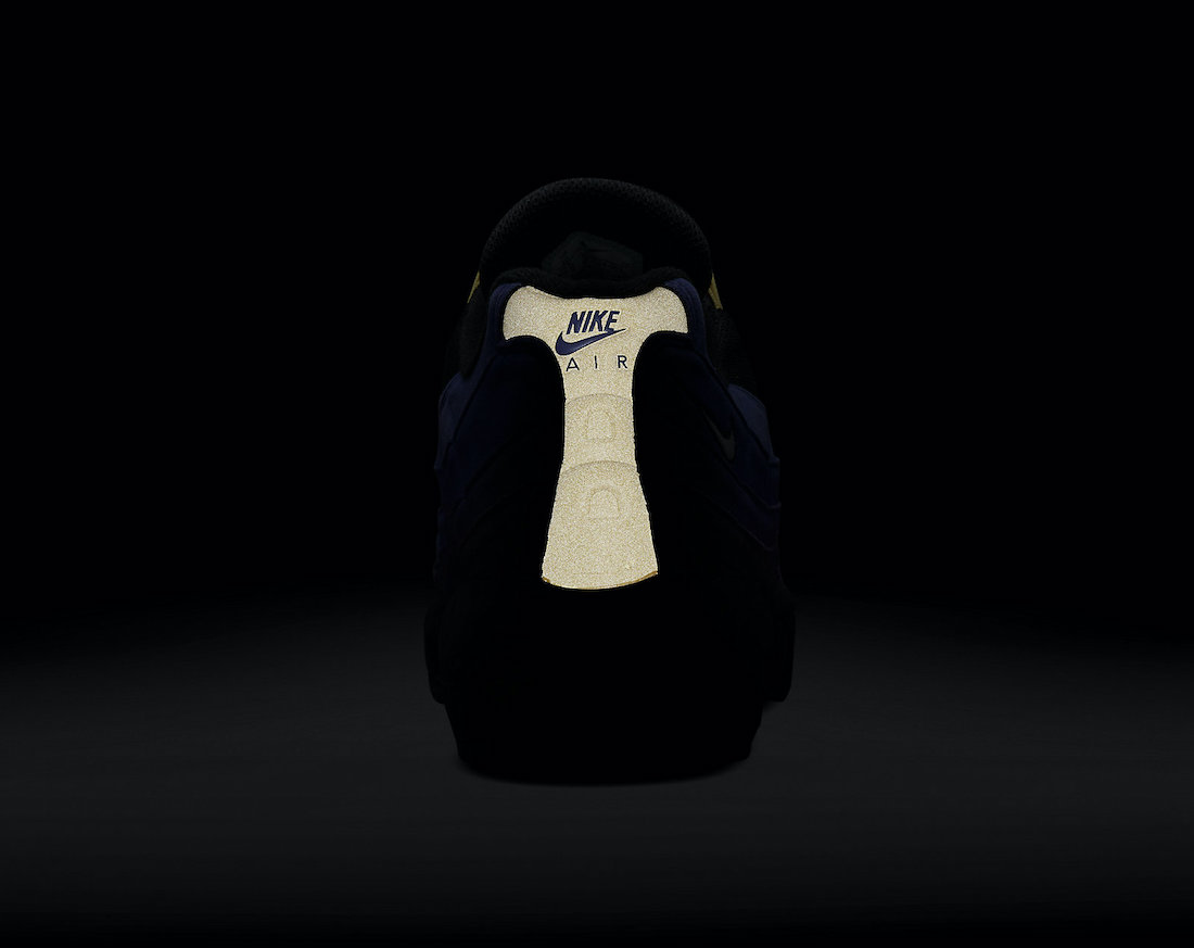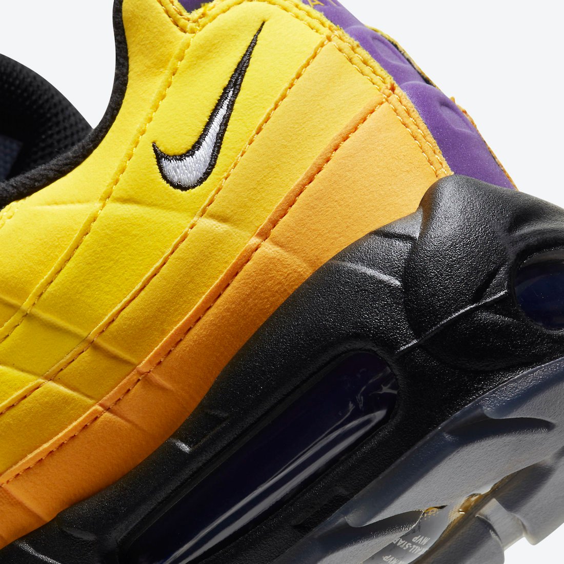 Looking closer, this LeBron James version of the Nike Air Max 95 features a mismatched design while the left shoe features Gold and the right comes in Purple. The two will also utilize Purple and Gold accents, which are swapped depending on the main color used on the base. The shades will land on the eyelets, heel, and within the Air Max unit. The highlight of this pair is its translucent outsole which shows LeBronโs career accomplishments with โ2โ and โ3โ on the forefoot. Lastly, we have LeBronโs branding on the tongue. Each pair will also come housed in an OG Air Max box. However, the colors used are Purple, Black, and Gold and features King James branding.