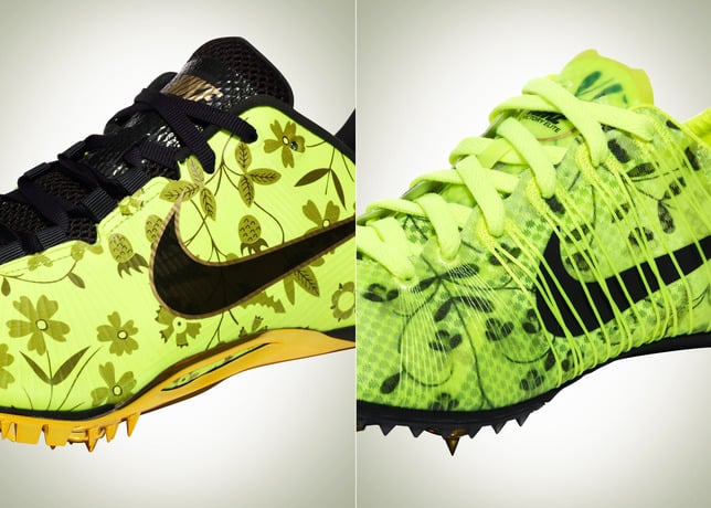 Created for Nike-sponsored female Olympians, Nike and Liberty have linked up to produce two special-edition track spikes – each coming in Nike’s popular Volt and featuring the London’s textile company’s “Mirabelle” floral print.