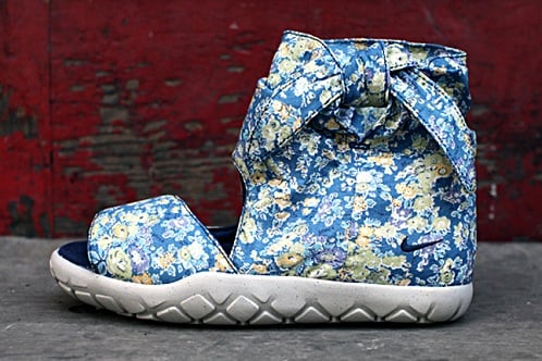 Less than a week ago we informed our readers of the fact that the Liberty x Nike Air Force 1 low had finally hit the online Nike shop after the brand’s collaborative efforts with the London-based company were discussed a handful of times already this year. However, this part of the collection is somewhat of a surprise. The floral pattern we saw on the aforementioned Air Force 1 low is once again applied to two different colors of the Nike Moc sandals pictured here with a high-cut ankle/heel portion that gets tied up to stay in place. These will be hitting English carriers soon; so, you’re best bet at snagging up a pair of these will probably be online. But what do you think of the design in general? Is it too much? Or does it all depend on the occasion/outfit?