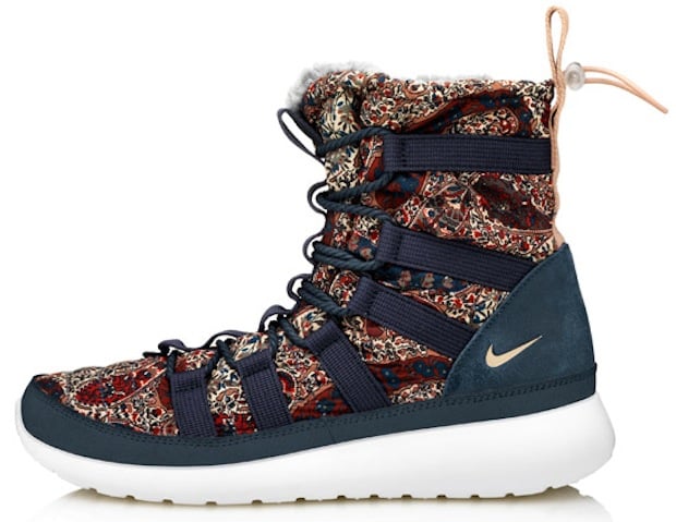 Featuring Liberty’s famous in-house “Bourton” paisley print, this collection features Nike’s popular Roshe Run Sneakerboot, the Dunk Sky Hi, Revolution Sky Hi, and the Nike Air Max 1. A women’s release, each silhouette displays either a black or navy base and includes 1960’s heritage “Bourton” details that line each upper. Similar accents are found atop each style’s overlays, eyestay, and Swoosh branding.