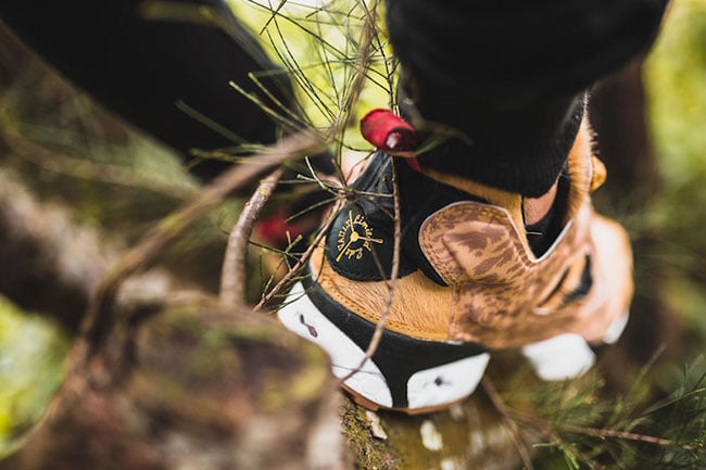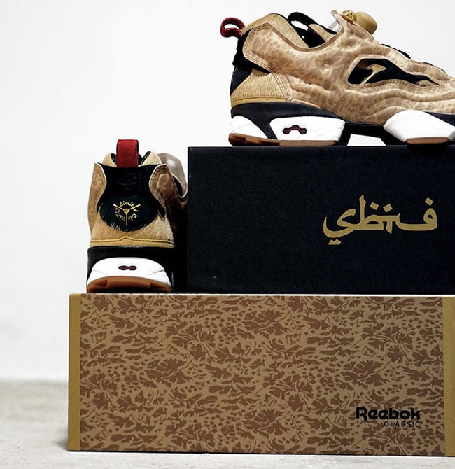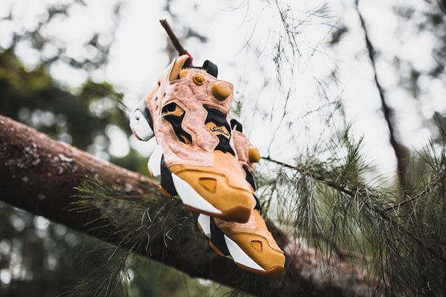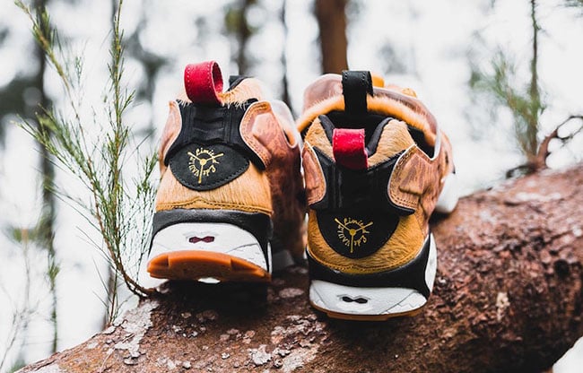 This three-way collaboration is inspired by lions native to Singapore. Looking closer, this Reebok Insta Pump Fury features Tan Pellegrini pony hair across the uppers which represents the fur of lions. Following we have the addition of SBTG Parsillia camouflage used on the overlays. Other details include Black and White accents while Red lands on the heel tab.