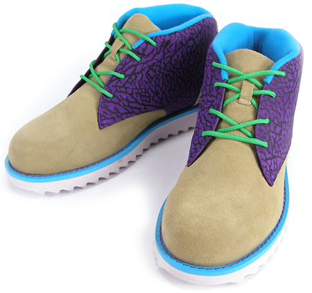 The Madmack7 as you can see uses a Hiking Boot, and features two different color schemes. But both pairs will feature elephant print in either Blue or Purple, with Yellow Accents or Light Blue this pair definitely stand out. Available now at Zozo.
