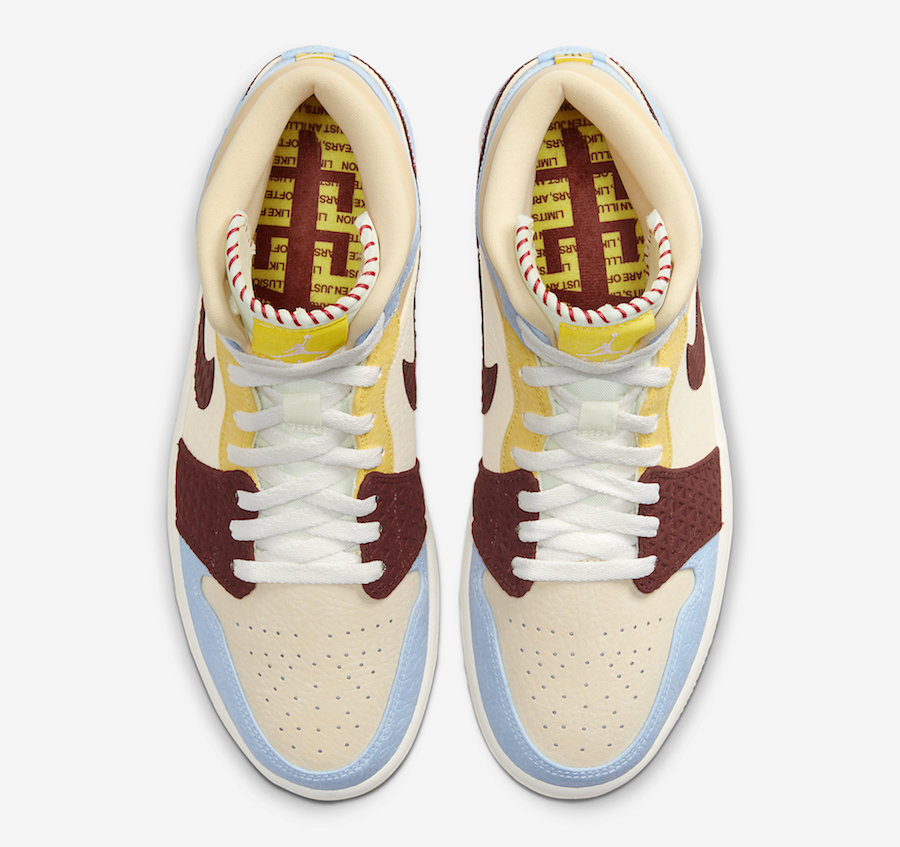 This mid-top Air Jordan 1 comes dressed in Cream, Brown, Yellow and Light Brown. Highlighted with hand-stitched detailing which pays tribute to the founderโs roots. Other details includes Yellow on the tongue label while Red stitching is seen on the tongue and Swoosh.
