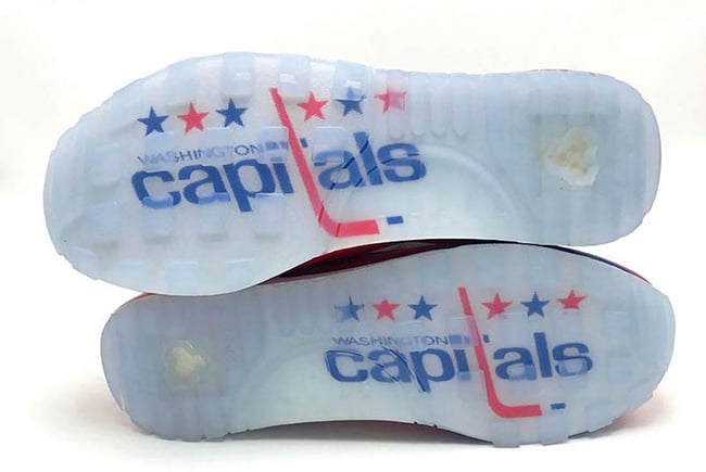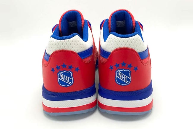 This Reebok Ventilator represents the capitals while dressed in a Red, White and Blue color theme that is seen on the teams uniforms. Looking closer you will see three stars by the toe which is taken from Major DCโs branding. Following we have Major DC x Reebok on the tongues while the NHL branding lands on the heel. Other highlights includes a bald eagle on the insole and translucent outsole which reads Washington Capitals.