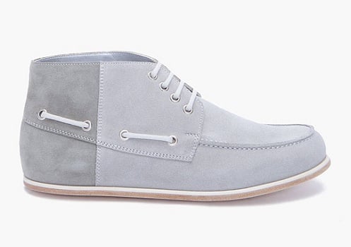 So far this season, we’ve checked out some desinger name boat shoes including offerings from Louis Vuitton and Gucci. Today, we take a look at Marc Jacobs’ rendering of said quintessential Summer sneaker type. The Marc Jacbos Port Shoes, pictured here, comes in two color-blocked sections (rear and middle/front) with dark and light grey used along most of the upper. Moccasin details show by way of the toe cap shape and general stitching, while he outsole comes in tan leather. Find these now at participating Marc Jacobs carriers.