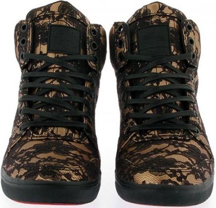 Married to the MOB and Lacoste recently teamed up to produce a black/purple rendering of the high-top Lacoste sneaker that now seems poised to release in another colorway. Pictured this time around is a black/gold colorway of the Lacoste Hiromi, which includes the MOB lips logo near the heel in a red that matches the color of the shoe’s outsole. These will be releasing as early as December 1st, from select Lacoste retailers. So does the purple or the gold pair tickle your fancy more?